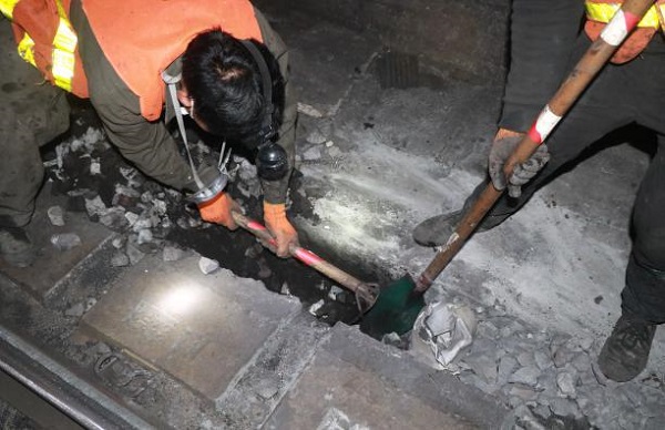 10月13日下午,调研人员与茶坞工务段开展座谈与交流活动。线路科王海波科长和桥隧科户小明科长介绍了大秦重载铁路概况和近年来在2万吨重载单元列车(轴重25吨)高频次作用下大秦线K164+000-K536+000里程内线路、桥涵、隧道和路基典型病害以及维修与养护措施和效果。重点指出了解决大秦线桥隧病害检测、服役状态监测、病害快速处置以及煤尘污染问题的迫切性。调研师生根据现场观察,结合专业知识,与工务段技术人员就重载铁路基础设施病害发生规律与检测、长期监控和预警以及病害快速修复展开了广泛而热烈的探讨。工务段刘楠高工耐心地解答了大家的疑问。