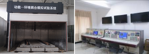 疲劳-环境耦合作用模拟试验系统可以实现环境因素与动荷载耦合作用模拟试验。模拟的环境因素包括:CO2、SO3等气体浓度因素;海水、酸雨、化冰盐、硫酸盐、碳酸盐等水溶液环境;含不同种类与浓度的盐的土壤与地下水环境因素;交替变化的湿度;循环变化的温度等,以及环境因素与动外加荷载交互和耦合作用的模拟。为重载铁路线、桥、隧与基础结构和关键工程材料的耐久性设计理论与方法、耐久性改善技术和高耐久性新材料的研发提供了公共试验平台。