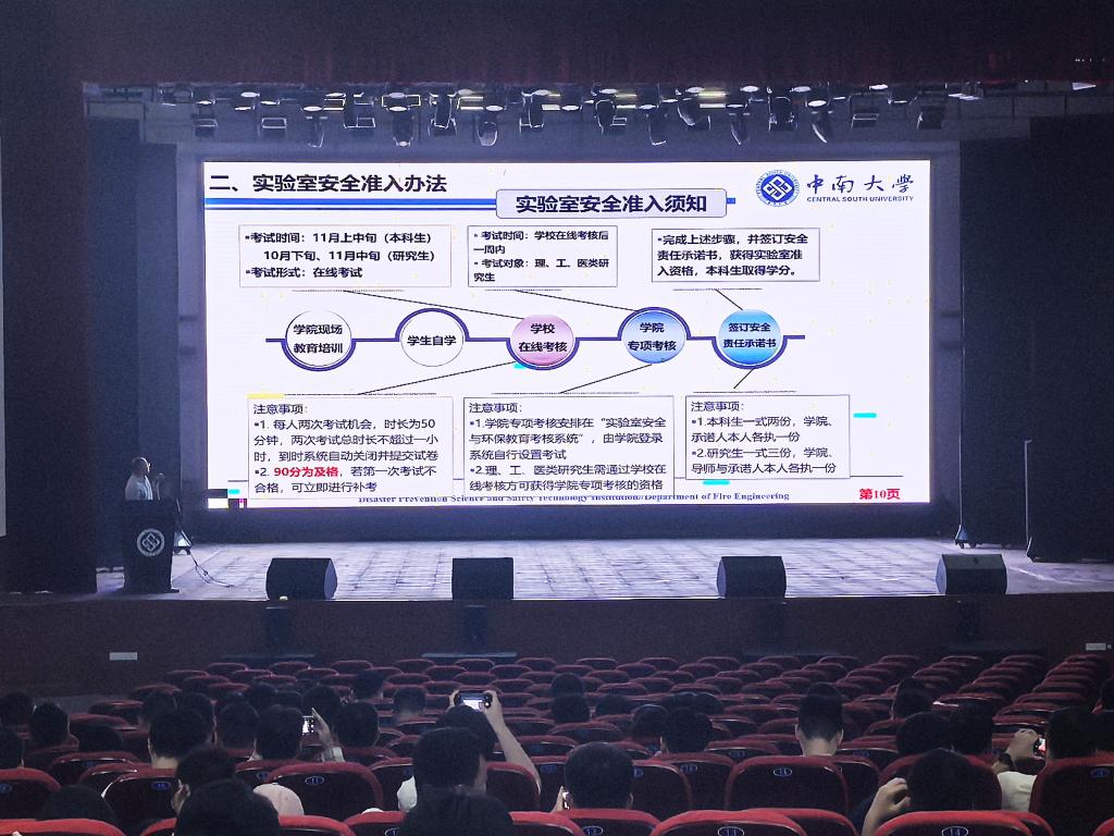 集团消防工程系颜龙老师为新生讲授《集团实验室管理制度和安全知识》,颜龙老师在授课中从实验室安全的重要性、实验室安全准入办法和高校实验室安全因素以及实验室安全环保基础知识等方面进行了细致系统的讲解,通过高校实验室事故案例深刻说明了保障实验室安全的重要性。