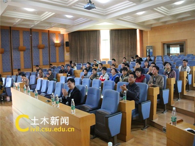 仪式结束后,郑启明教授系统的介绍了台湾淡江大学、土木工程系以及风工程研究中心,并作了题为“基于气动力数据库之超高建筑抗风设计”的学术报告。报告中郑教授详细阐述了单栋矩形断面高层建筑气动力数据库、单栋不同断面形状之高层建筑气动力数据库和二栋相邻高层建筑干扰效应之气动力数据库。郑教授的讲解由简及繁,所授内容通俗易懂,深入引导学生们学习相应知识。
