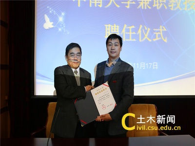 11月17日上午,台湾淡江大学土木工程系主任郑启明教授特聘集团兼职教授仪式在铁道校区国际报告厅举行。新葡的京集团35222vip何旭辉副院长出席特聘仪式,并为陈启明教授颁发了兼职教授聘书。百余名师生代表与会并聆听了讲座。集团人事处副处长许毅主持仪式。