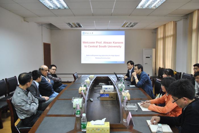 2014年4月21日,美国工程院院士Ahsan Kareem教授和吴腾博士一行受邀来集团访问。土木院院长谢友均教授、副院长何旭辉教授会见了Ahsan Kareem教授一行。