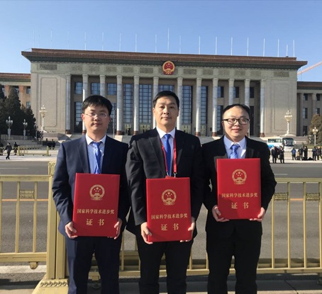 风洞团队成员何旭辉(中)、邹云峰(左)、敬海泉(右)在京领奖合影