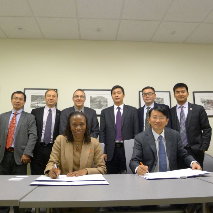 While visiting UIUC, the CSU delegation held group and individual meetings with university leaders and researchers. They first met with the Interim Provost and Vice Chancellor for Academic Affairs, Prof. Edward Feser. Vice President Chen and Provost Feser discussed existing and future collaborations across a range of subjects, including engineering and medicine. Topics discussed included potential cooperation on joint education programs, cutting-edge research innovation, and medical education and research. Provost Feser said:” We are delighted to welcome to UIUC today such a senior CSU delegation, from a leading academic center in China with which UIUC not only shares great similarity but also already has significant connections. I hope this visit will set our student exchange programs and research partnerships with CSU on a path to go from strength to strength.” Vice President Chen commented:” CSU cherishes its collaborations with UIUC. We have recently recruited several UIUC graduates as new faculty members such as Dr. Xiao; meanwhile, we have also invited UIUC’s world-renowned faculty members to serve as our guest professors, such as Prof. Erol Tutumluer from your department of Civil and Environmental Engineering (CEE), who was just competitively selected to be honored by China’s Ministry of Education as the 2016 Yangtze River Scholar. Thanks to such long lasting ties and friendship between the two universities, the cooperation can be extended across a much wider scale. We welcome more interactions among the students and professors from both universities to bring some real and practical projects to fruition.” Then, Vice President Chen attended the signing ceremony of the Memorandum of Understanding (MOU) and the “3+2 BS+MS” program agreement between CSU and UIUC and signed both documents into effect together with his counterpart, UIUC’s Vice Provost for International Affairs and Global Strategies Director, Dr. Reitumetse Obakeng Mabokela. Other members of the UIUC welcoming delegation that attended the ceremony included the Director of Illinois Strategic International Partnerships, Dr. Tim Barnes, the Director of International Programs of the CEE department, Prof. Erol Tutumluer, and the International Visitors and Protocol Specialist, Ms. Lauren Karplus. During the visit, the CSU delegation also met with UIUC’s Executive Associate Dean of College of Engineering, Prof. Martin D.F. Wong, Head of the CEE department, Prof. Benito Marinas, and Associate Head and Director of Graduate Studies and Research of the CEE department, Prof. Jeffery Roesler. Both sides had fruitful dialogues and exchanged visions regarding undergraduate study abroad program, summer camp activities, scholarly exchange opportunities, and research collaborations at the level of Civil Engineering programs and beyond. The CSU delegation completed its UIUC visit by touring the world-class research facilities housed at the Newmark Structural Engineering Laboratory (NSEL) and the Research & Innovation Laboratory (RAIL) for railway infrastructure. Such tours were guided respectively by Prof. Bill Spencer, Director of the NSEL, and Prof. M. Rapik Saat and Research Engineer Dr. Yu Qian, both with the Rail Transportation and Engineering Center (RAILTEC).