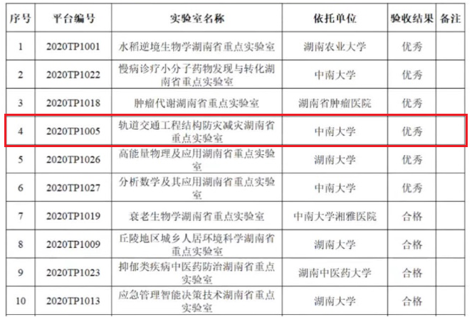 轨道交通工程结构防灾减灾湖南省重点实验室(Hunan Provincial Key Laboratory for Disaster Prevention and Mitigation of Rail Transit Engineering Structures)是湖南省科技厅于2020年筹建的省级重点实验室,该实验室面向极端复杂工程环境条件下轨道交通工程结构面临的防灾减灾重大需求,聚焦轨道交通“安全、高速、舒适、节能”科技创新,重点研发轨道交通工程结构防灾减灾安全保障技术,突破工程结构防灾减灾领域的前瞻性、颠覆性技术,建成我国轨道交通领域高层次创新人才培养、理论及应用研究基地。