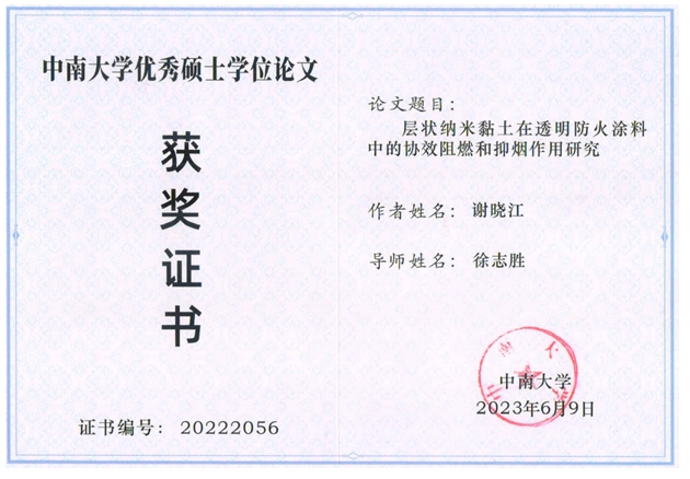 10、《低烟水性透明防火涂料的设计、制备及性能研究》