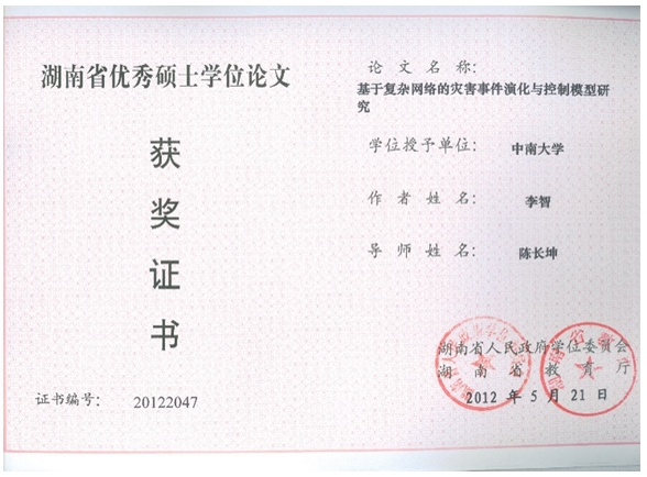 2、《基于复杂网络的灾害事件演化与控制模型研究》