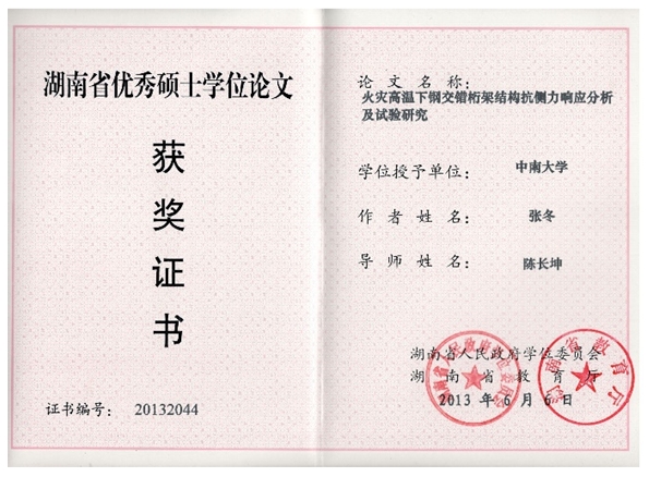1、《火灾高温下钢交错桁架结构抗侧力响应分析及试验研究》
