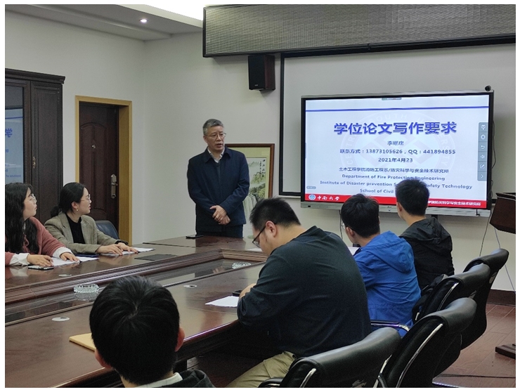 2021年4月22日19点,值此2021届毕业生申请学位答辩之际,集团消防工程系特邀李耀庄教授进行学位论文格式规范报告,报告地点位于集团铁道学院第一综合实验楼。本次报告会由消防工程系教职工党支部、学生党支部联合策划,消防科学青年社组织承办,特邀消防工程系李耀庄教授、新葡的京集团35222vip辅导员、研防灾党支部书记杨涛老师,消防工程系王峥阳老师出席报告会,其他参与人员有消防工程系2021届毕业生及其他土木类学生。消防科学青年社主席、消防工程系2019级博士研究生赵家明主持报告会。