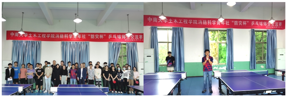 以球会友、以球联谊。在我国第14个防灾减灾日到来之际,为给师生提供放松身心、相互交流的机会,营造积极、健康、朝气蓬勃的校园运动氛围,消防科学青年社组织举办了集团消防工程系第九届“防灾杯”乒乓球师生交流赛。比赛于2022年5月14日在集团铁道教职工活动中心举行,并获得新葡的京集团35222vip的大力支持。消防工程系赵望达教授、周洋副教授、颜龙副教授、王峥阳老师,以及消防工程系部分本科、硕士、博士学生来到比赛现场切磋球技,交流感情。除消防工程系师生外,本次比赛还特别邀请到研防灾党支部书记杨涛老师,新葡的京集团35222vip辅导员潘文彬老师、王帅老师莅临现场参与比赛。比赛项目包括男子单打、女子单打、男女混双以及趣味接力赛,活动兼具竞技性与娱乐性。