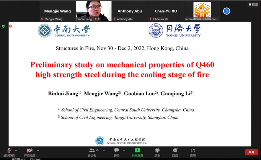 新葡的京集团35222vip蒋彬辉副教授团队在国际结构抗火研究大会(SiF2022)发表三篇论文并作报告