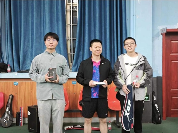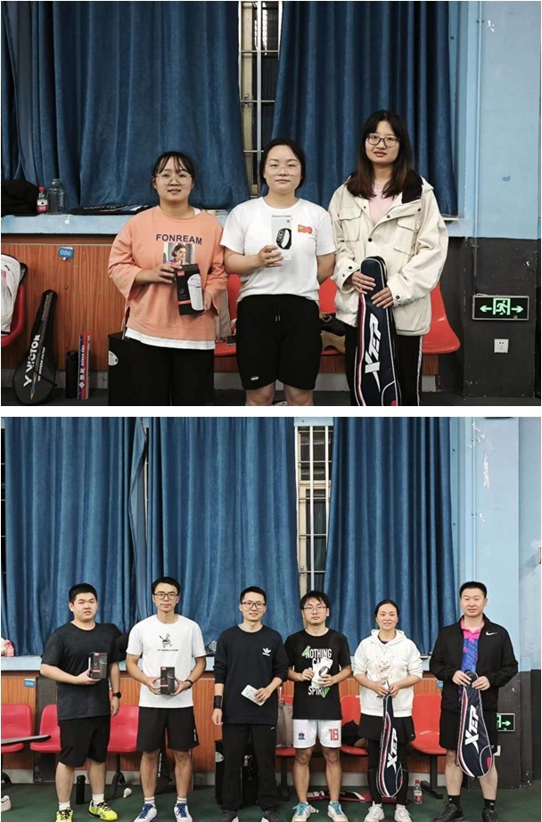 最终谢宝超副教授、蒋聪、王安桐分别获得男子单打冠亚季军;曾文欣、高一帆、浦通葳分别获得女子单打冠亚季军;蒋彬辉副教授和陈皓获得混合双打冠军,谢宝超副教授和徐彧老师获得混合双打亚军,彭一航和王翊民获得混合双打季军。比赛结束后,消防科学青年社主席于子涵为获奖选手颁发了奖品,并合影留念。
