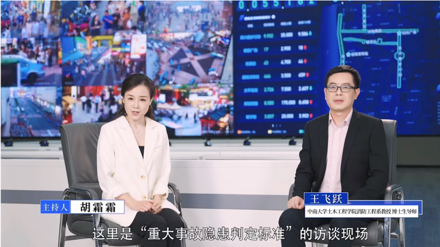2024年6月是第23个全国“安全生产月”,湖南省安全生产委员会办公室、湖南省应急管理厅、长沙市安全生产委员会办公室、天心区安全生产委员会办公室邀请集团消防工程系王飞跃教授作为访谈专家,联合制作了湖南省“安全生产月”活动宣传作品——专家访谈《重大事故隐患判定标准》。