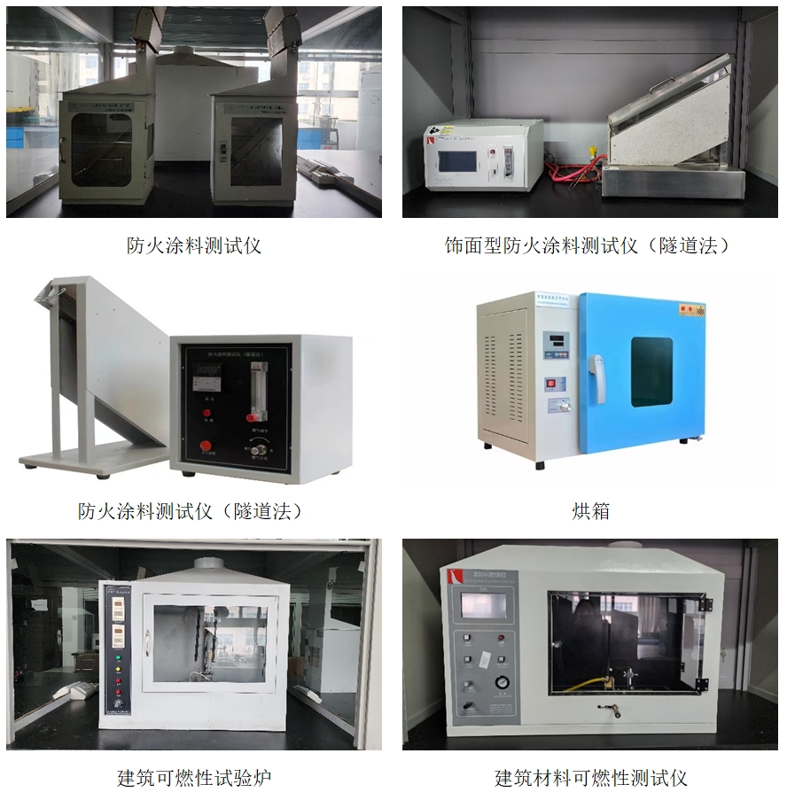 防火涂料测试仪(隧道法)、防火涂料测试仪(小室法)、烘箱、集热式恒温加热磁力搅拌器、建材可燃性试验炉、建材可燃性试验炉、建筑材料不燃性测试仪、建筑材料可燃性测试仪、球磨机、饰面型防火涂料测试仪(隧道法)、数控超声波清洗器、烟密度测试仪、阻燃木材燃烧试验装置(木垛法)、初期干燥抗开裂性试验装置、实验分散砂磨机、实验风冷输送机、双螺杆微型挤出机、水平垂直燃烧试验仪、微型双螺杆挤出机、盐雾腐蚀试验箱、氧弹量热仪