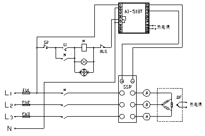 通过电阻炉温度控制器连接定制电阻炉,控制电阻炉内部温度,进而达到对放入电阻炉内的混凝土加热的效果。温度控制器主要电气原理图如下: