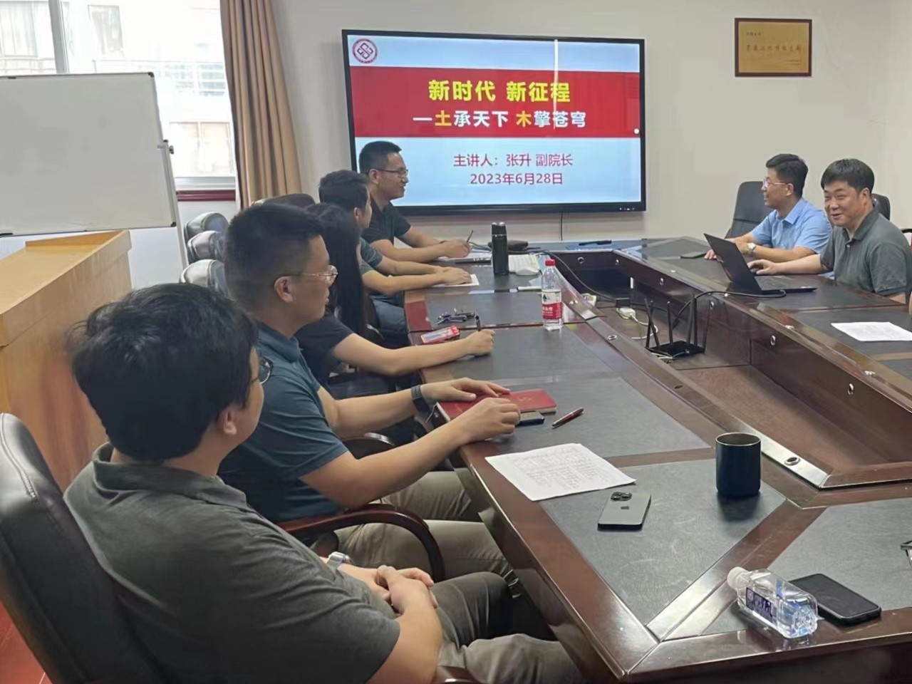 院党委书记蒋琦玮以“土承天下,木擎苍穹——以建设教育强国为己任”为主题讲授专题党课,他从党的二十大主题入手,引用了习近平总书记关于深入实施科教兴国战略、加快建设教育强国的相关论述,结合理论学习和实践调研情况,指出学院要面向国家重大需求,弘扬科学家精神,传承科学家精神,聚天下英才,强调坚持党建引领,坚持教育、科技、人才一体化发展;坚持引育并举,打造高层次人才队伍与创新人才梯队;对接国家重大战略,强化有组织科研,持续提升科研创新能力;强化有组织社会服务,深化政产学研用全方位合作。激励集团教师坚持不懈用习近平新时代中国特色社会主义思想铸魂育人,坚持为党育人,为国育才,把服务国家作为最高追求,以将集团土木工程建设成为国家一流学科为目标,瞄准世界科技前沿和国家重大战略需求,主动超前布局、有力应对变局、奋力开拓新局,不断提升原始创新能力和人才培养质量。踔厉奋发,勇毅前行,奋力推进学院事业内涵式高质量发展。