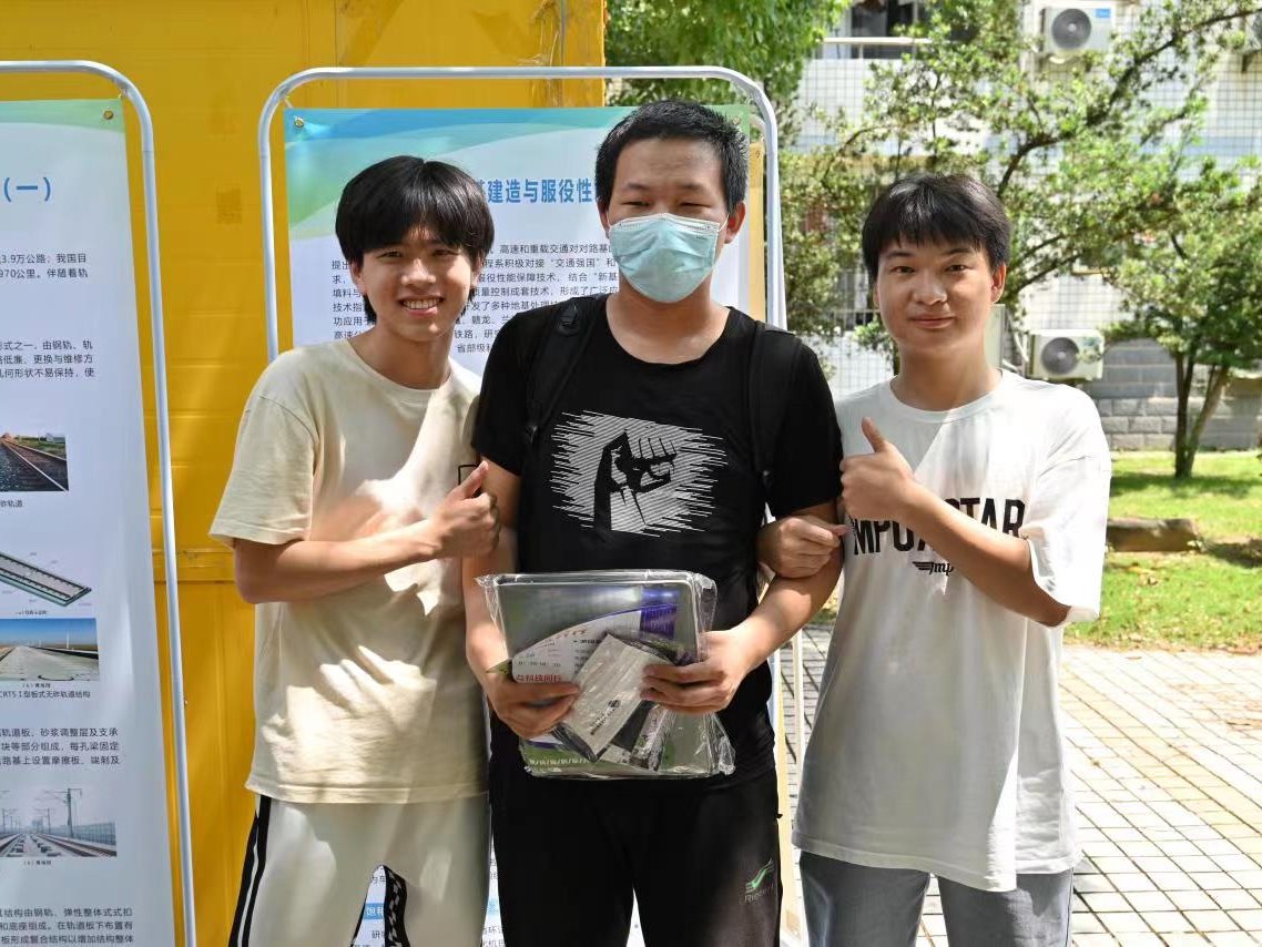 活动分为三个环节,参与者将依次参加各个环节。第一个环节是科技知识问答,参与者要在十分钟内回答工作人员准备的十个问题,根据答题正确率,获得相应的奖品。本环节的题目数量少但内容“精”、知识“新”,围绕高速铁路相关知识,延伸至整个轨道交通领域。参与者在答题的同时,也能充分了解到轨道交通方面的基本知识以及我国在高速铁路建造领域取得的伟大成就。第二个环节是模型搭建,参与者将在规定时间内,用长宽不一的松木条及相关辅助工具搭建桥梁或建筑模型,这是对参与者想象能力、动手能力的一大考验。正如:“实践是检验真理的唯一标准”,通过观察搭建成果,参与者能检验自己的桥梁结构是否稳固、建筑样式是否美观,起到了很好的激发兴趣的作用。第三个环节是基地研究成果展示,在活动现场,志愿宣讲员结合展出的科普展板,用通俗易懂的语言,向参与者介绍集团在土木工程相关专业领域的先进科研成果,同时与参与者互动,解答相关疑问。最后,完成三个“闯关”环节的同学会与工作人员积极交流探讨。其中一名来自土木工程专业的同学说到:“这次游园会,我印象最深的是知识问答的环节,因为明明与我学的专业息息相关,但我还是有那么多未知的领域,我有点惭愧但更多的是动力,是继续学习的动力。”