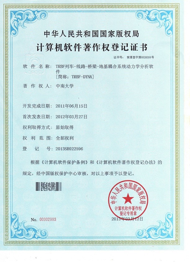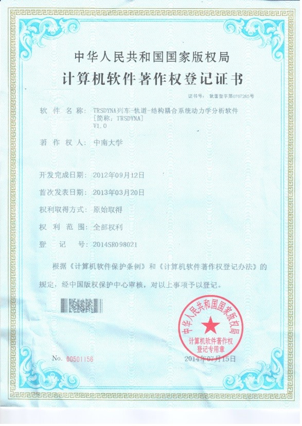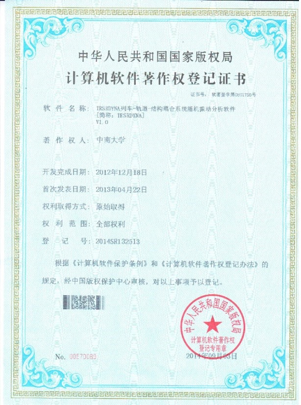 (1)授权车桥耦合振动分析软件著作权3项: