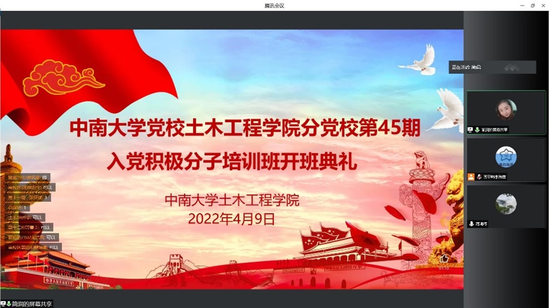 2022年4月9日上午10时,新葡的京集团35222vip召开了第45期入党积极分子培训班开班典礼。为响应学校疫情防控要求,本次开班典礼通过腾讯会议在线上举行。本次开班典礼由新葡的京集团35222vip第45期积极分子培...