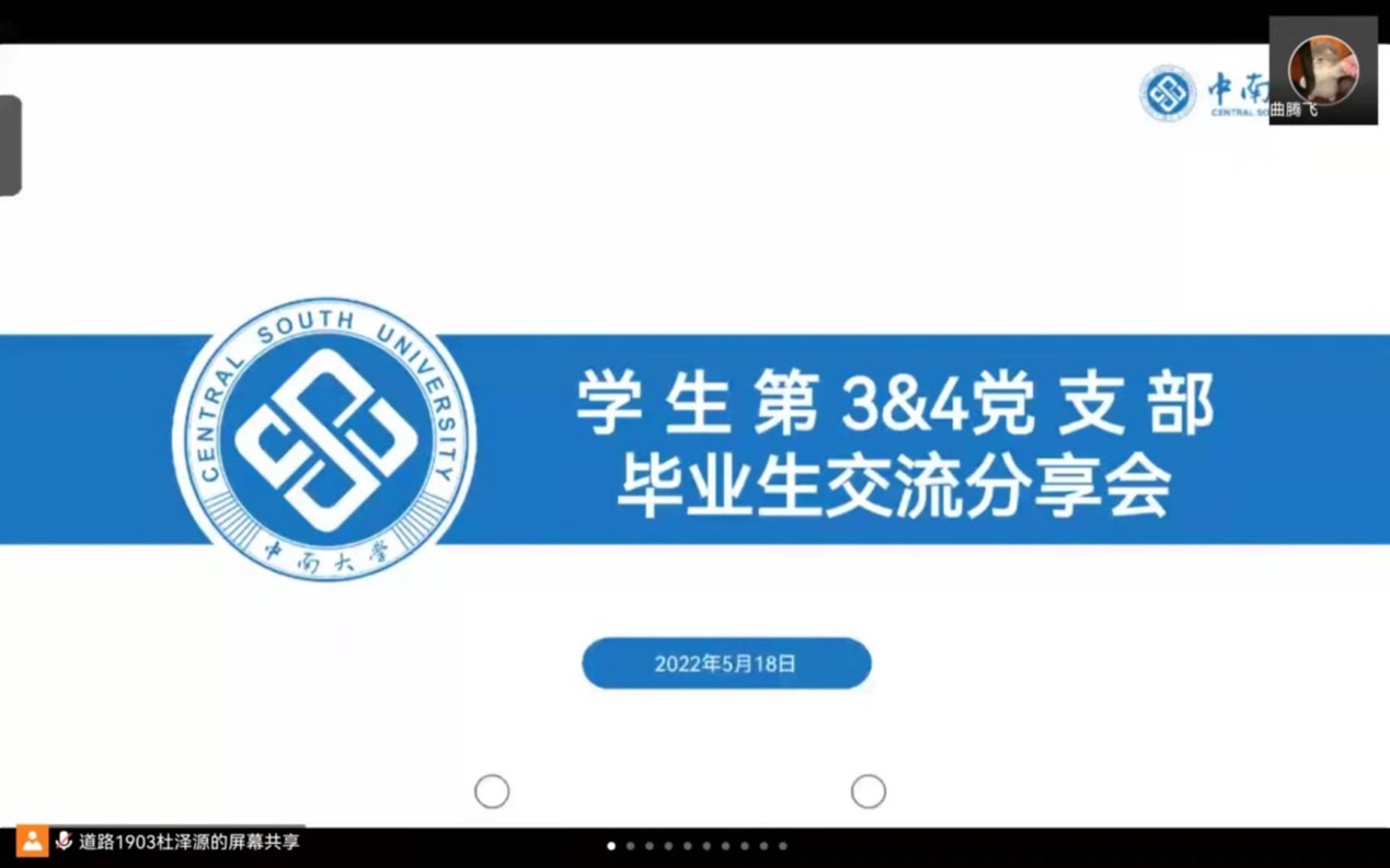 2022年5月18日晚,学生第三、四党支部联合毕业生交流分享会在线上如期进行,参加本次分享会有支部全体成员以及支部联系班团部分同学,本次分享会的主要内容是两个党支部七位优秀毕业同志同志...