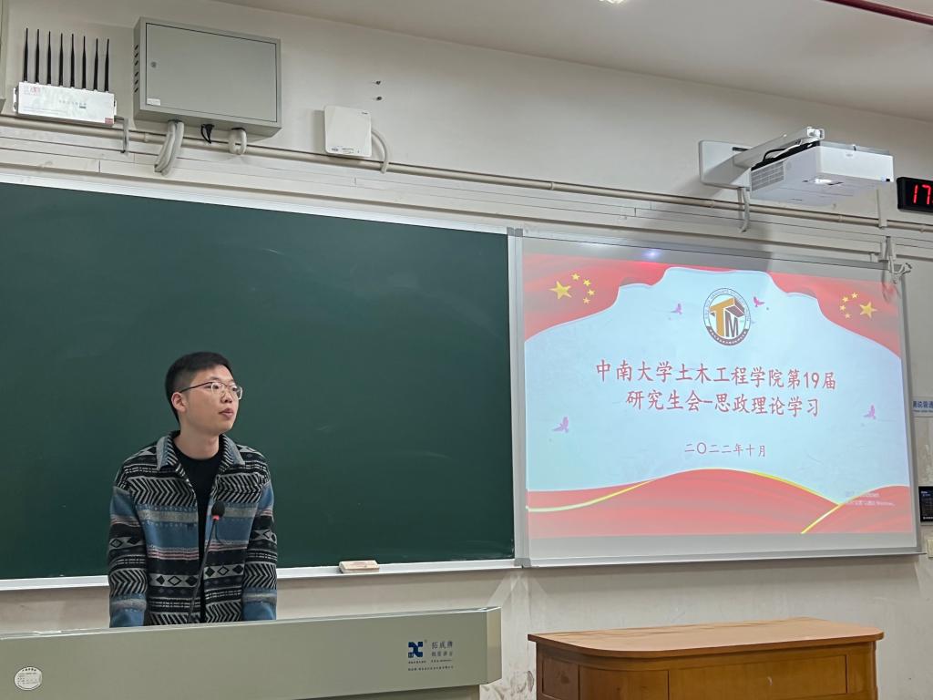 2022年10月09日下午5时,新葡的京集团35222vip研究生会思政理论学习活动在世纪楼主401教室顺利开展。本次会议由研会主席团成员杨佳宝同学主持,第19届土木院研会全体成员均参加了本次会议。...